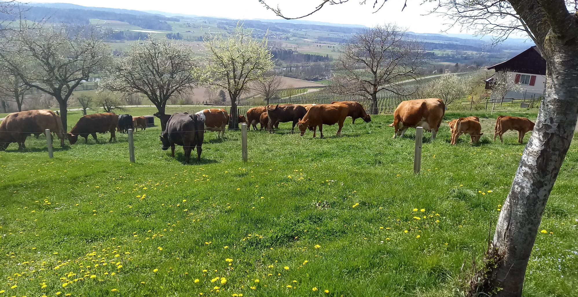 Die natürliche Haltung macht unser Nature-Beef besonders zart und aromatisch. Die Kälber leben im Stall und auf der Weide mit ihren Müttern zusammen und ernähren sich mehrheitlich von Milch, Wasser, Heu und Gras.